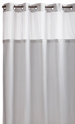 This Hookless Fabric Shower Curtain with built-in rings makes updating your bathroom a breeze. Our patented Flex-On rings eliminates the need to purchase shower curtain rings and deal with the hassle of them falling off the curtain. Sheer window adds extra light into showering space. Snap-in fabric liner included for easy cleaning.You will not be disappointed with