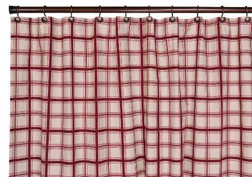 Logan Plaid Bathroom Shower Curtain--Country style charm is what the Logan Plaid Curtain Program brings to your decorating style. The soft 100-percent cotton duck fabric creates a softer texture and smoother draping effect and that some times can't be achieved with inferior synthetic fabrics. You are sure to get a shower curtain that makes any bathroom warm and inviting with the large scale 5 inch Monochromatic plaid pattern. The shower curtain measures 72 inches wide and is 72 inches long from top to bottom of panel. One shower curtain will fit a standard size shower and will require 12 shower curtain rings to hang. Shower curtain can be combined with coordinating Logan Plaid Tailored Tier Curtains, Tailored Pair Drape Panels with Tiebacks, Valences, Throw Pillows and Chair Pads that are all available thru Amazon. Made in the USA, Dry clean onlyYou will not be disappointed with
